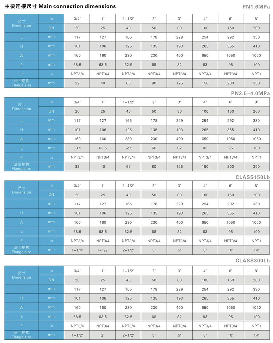 壓力范圍:國標(PN1.6、4.0Mpa)、美標(Class150、300)