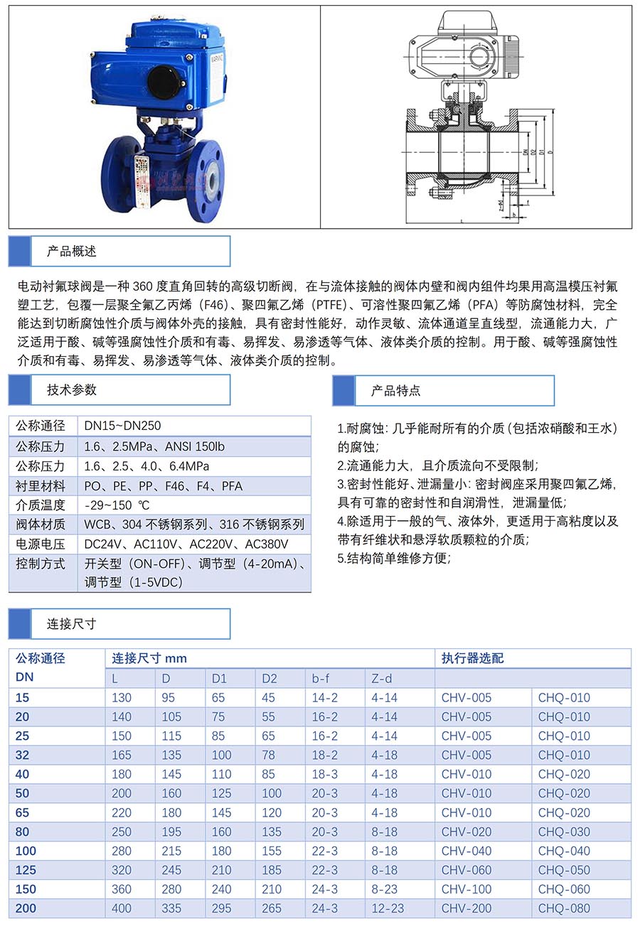 CHQ941F46電動(dòng)襯氟球閥 / Electric lining fluorine ball valve