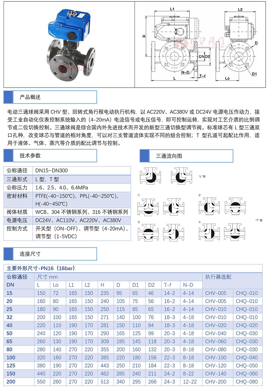 CHQ945F、CHQ944F電動三通球閥 / Electric three-way ball valve