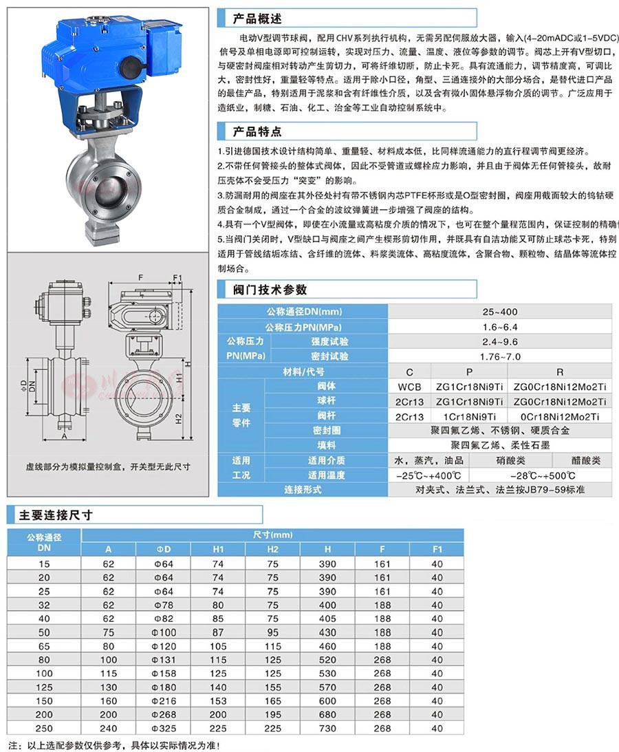 電動(dòng)對(duì)夾式V型球閥配用CHV系列執(zhí)行機(jī)構(gòu),無(wú)需另配伺服放大器,輸入(4-20mADC或1-5VDC) 信號(hào)及單相電源即可控制運(yùn)轉(zhuǎn),實(shí)現(xiàn)對(duì)壓力、流量、溫度、液位等參數(shù)的調(diào)節(jié)。閥芯上開(kāi)有V型切口,與硬密封閥座相對(duì)轉(zhuǎn)動(dòng)產(chǎn)生剪切力,可將纖維切斷,防止卡死。具有流通能力,調(diào)節(jié)精度高,可調(diào)比大,密封性好,重量輕等特點(diǎn)。適用于除小口徑,角型、三通連接外的大部分場(chǎng)合,是替代進(jìn)口產(chǎn)品的好產(chǎn)品,特別適用于泥漿和含有纖維性介質(zhì),以及含有微小固體懸浮物介質(zhì)的調(diào)節(jié)。廣泛應(yīng)用于造紙業(yè),制糖、石油、化工、治金等工業(yè)自動(dòng)控制系統(tǒng)中。