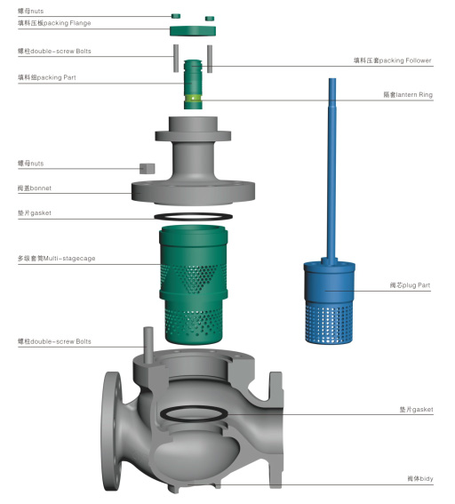 不平衡式多級降壓調(diào)節(jié)閥結(jié)構(gòu)圖(Unbalanced multistage step-down regulator structure diagram)