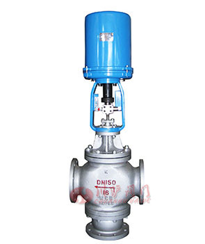 電動三通調(diào)節(jié)閥由電動執(zhí)行機構(gòu)和三通調(diào)節(jié)閥體組成,三通調(diào)節(jié)閥有三通分流調(diào)節(jié)閥和三通合流調(diào)節(jié)閥兩種結(jié)構(gòu)形式。適用于配比調(diào)節(jié)閥或旁路調(diào)節(jié)。例如用于熱交換上流體溫度的調(diào)節(jié),把一路進口流體分成兩路出口流體,或把兩路進口流體合并成一路出口流體。由電動三通調(diào)節(jié)閥組成的控制系統(tǒng)具有簡單、經(jīng)濟、性能穩(wěn)定可靠等特點。