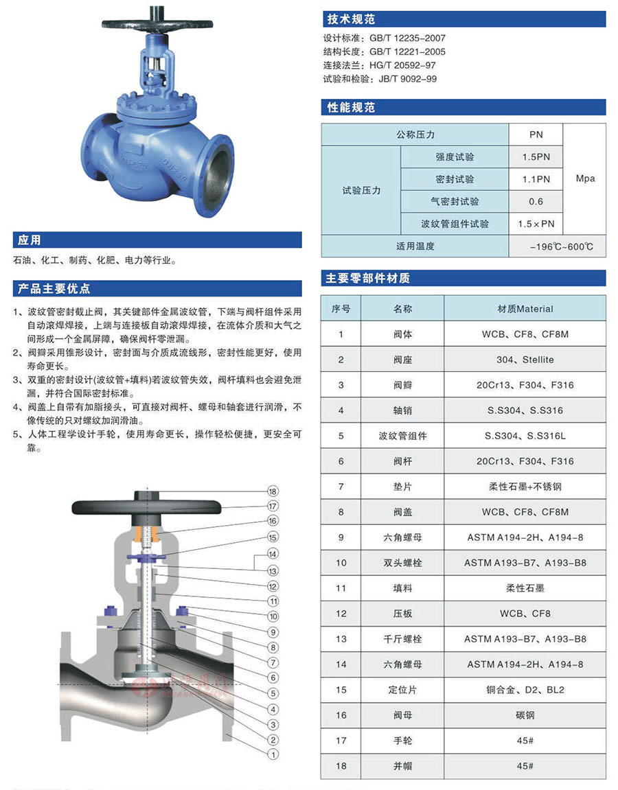國標波紋管截止閥參數(shù) (Valve Parameters)