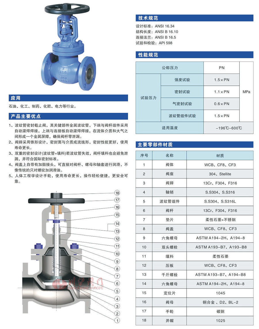 美標波紋管截止閥參數(shù) (Valve Parameters)