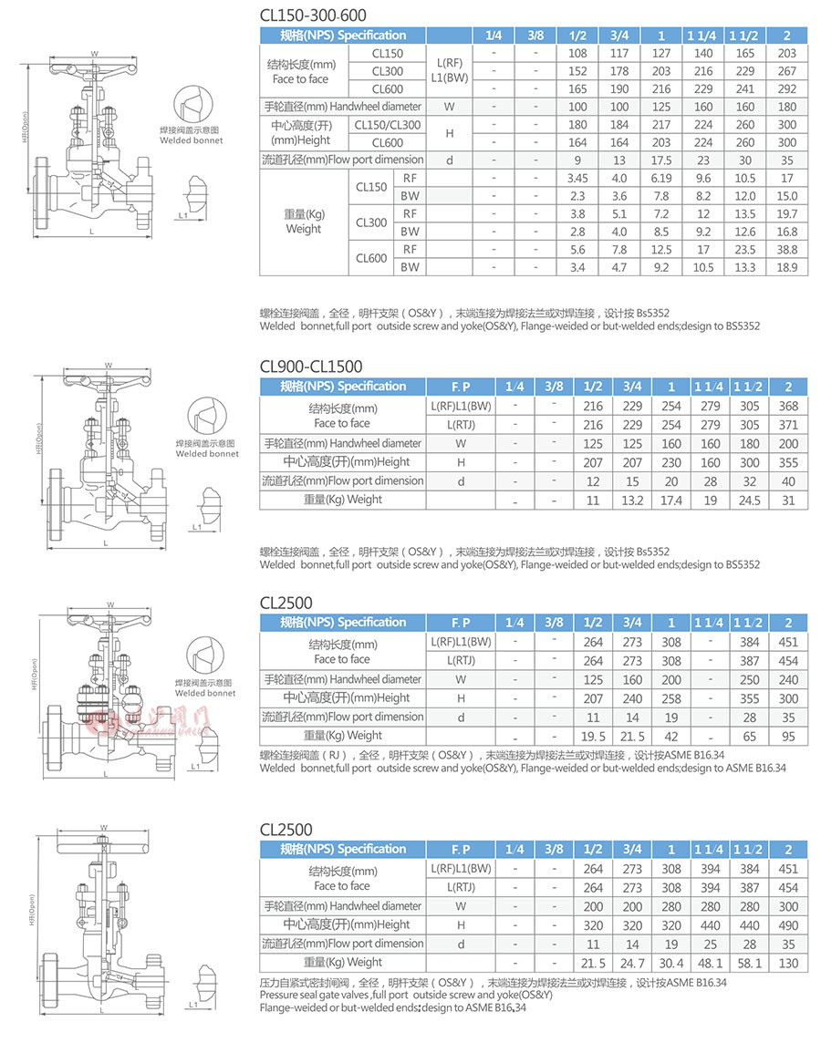 法蘭與對焊截止閥參數 (Valve Parameters)