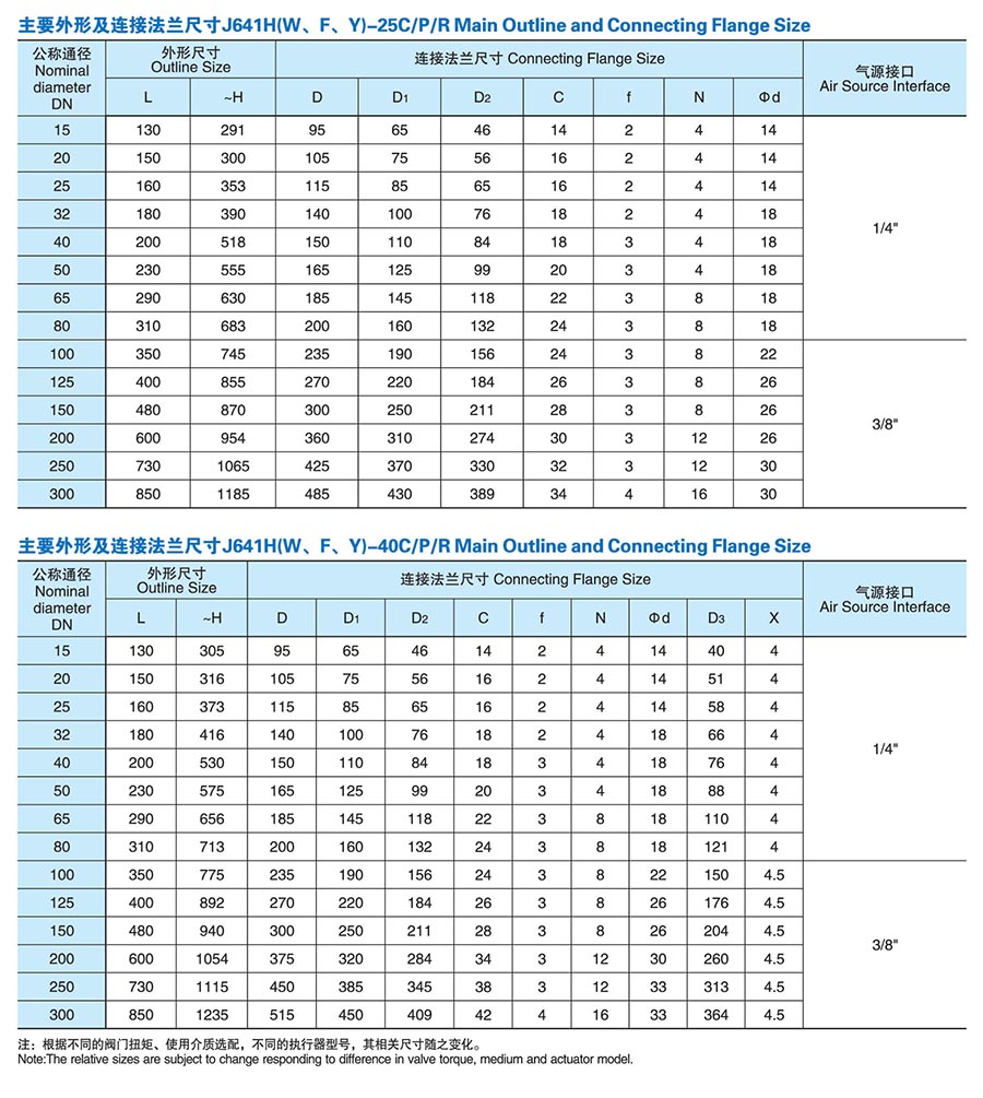公稱通徑:DN15-300mm