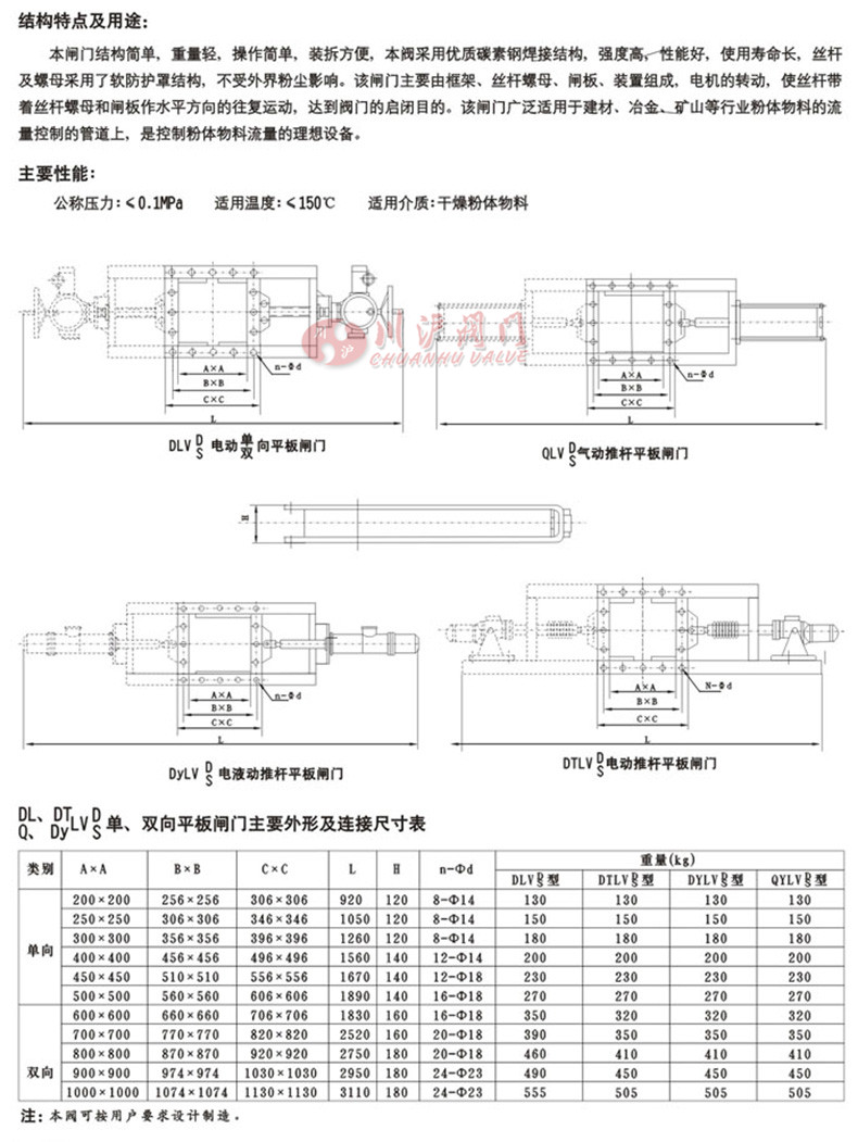電動(dòng)平板閘門結(jié)構(gòu)簡(jiǎn)單,重量輕,操作簡(jiǎn)單,裝拆方便,本閥采用優(yōu)質(zhì)碳素鋼焊接結(jié)構(gòu),強(qiáng)度高,性能好,使用壽命長(zhǎng),絲桿及螺母采用了軟防護(hù)罩結(jié)構(gòu),不受外界粉塵影響。該閘門主要由框架、絲桿螺母、閘板、裝置組成,電機(jī)的轉(zhuǎn)動(dòng),使絲桿帶著絲桿螺母和閘板作水平方向的往復(fù)運(yùn)動(dòng),達(dá)到閥門的啟閉目的。該閘門廣泛適用于建材、冶金、礦山等行業(yè)粉體物料的流量控制的管道上,是控制粉體物料流量的理想設(shè)備。