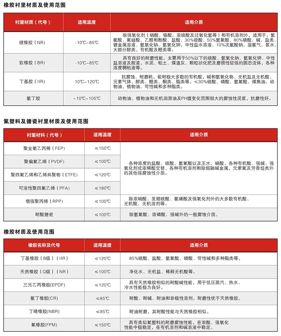 襯套材料:NBR(丁晴橡膠)、EPDM(乙丙橡膠)、PTFE(聚四氟乙烯)
