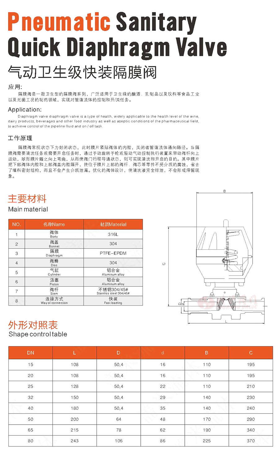 氣動(dòng)快裝隔膜閥是一款衛(wèi)生型的隔膜閥系列,廣泛適用于衛(wèi)生級(jí)的釀酒、乳制品以及飲科等食品工業(yè)以及無菌工況的制藥領(lǐng)域,實(shí)現(xiàn)對(duì)管道流體的控制和開/關(guān)任務(wù)。