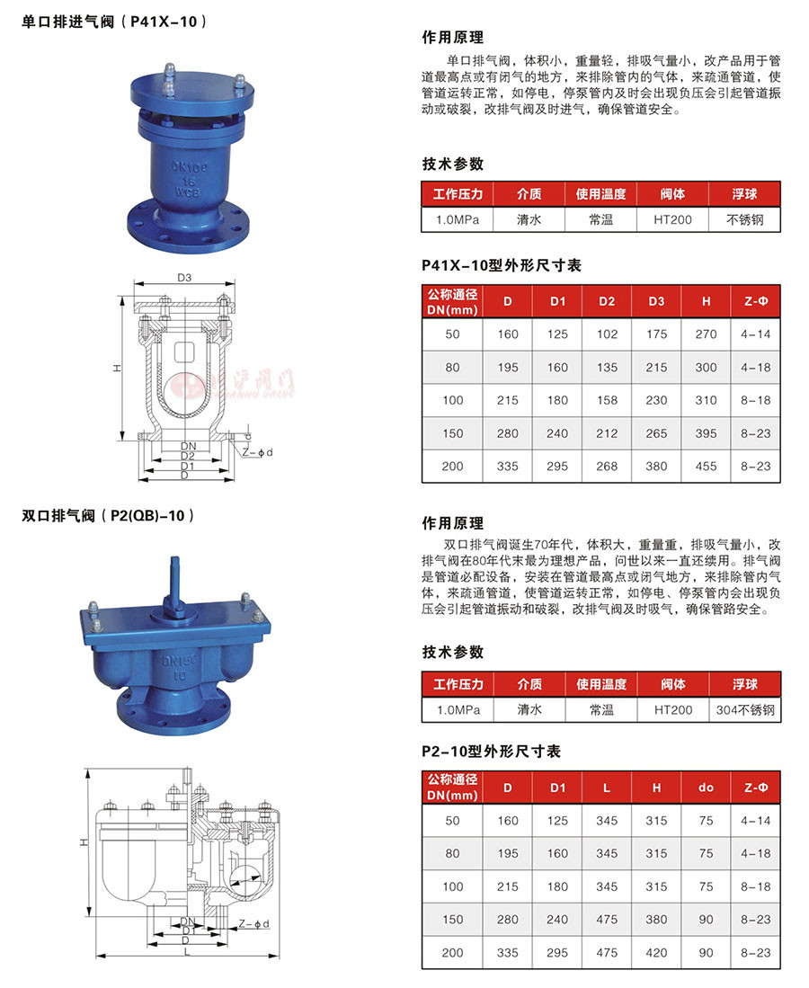 P2雙口排氣閥誕生70年代,體積大,重量重,排吸氣量小,改排氣閥在80年代末為理想產(chǎn)品,問世以來一直還續(xù)用。排氣閥是管道必配設(shè)備,安裝在管道高點(diǎn)或閉氣地方,來排除管內(nèi)氣體,來疏通管道,使管道運(yùn)轉(zhuǎn)正常,如停電、停泵管內(nèi)會(huì)出現(xiàn)負(fù)壓會(huì)引起管道振動(dòng)和破裂,改排氣閥及時(shí)吸氣,確保管路安全。