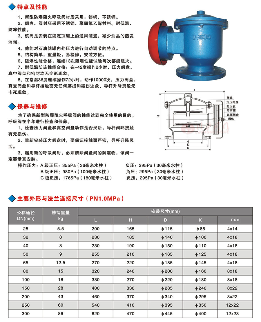 3、該閥是安裝在固定頂罐上的通風(fēng)裝置,減少油品的蒸發(fā)消耗。