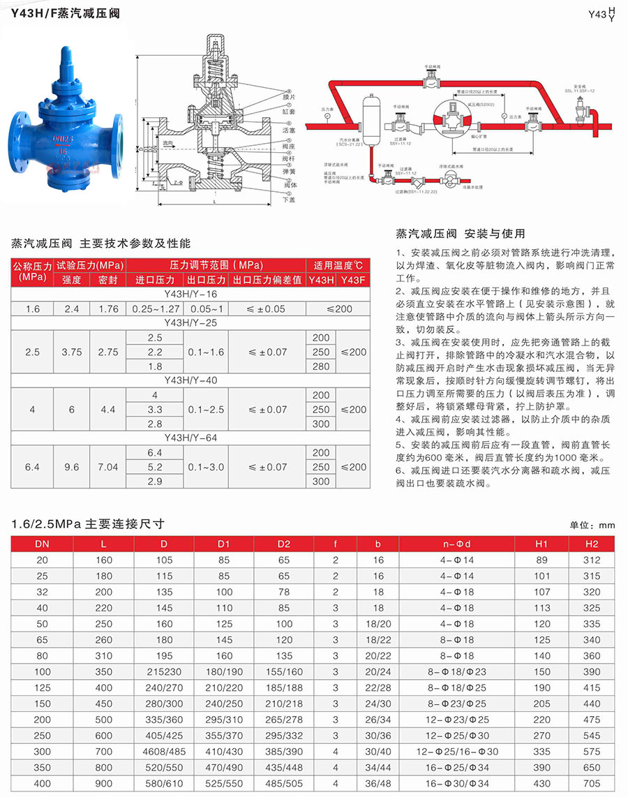 Y43H/Y蒸汽減壓閥安裝和使用