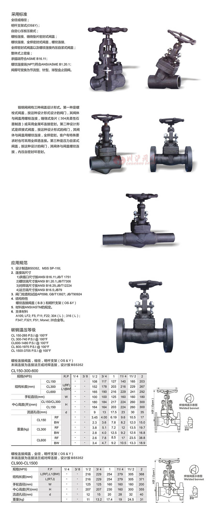 J41W/J41Y鍛鋼法蘭截止閥采用標(biāo)準(zhǔn)
