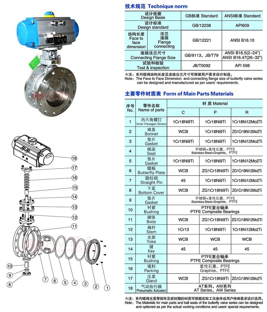 壓力范圍:國(guó)標(biāo)(PN0.6、1.0、1.6、2.5、4.0Mpa)、美標(biāo)(Class150、300lb)