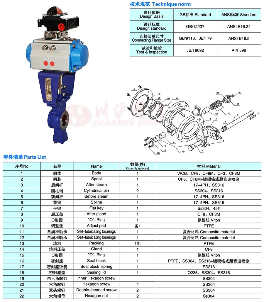 CHVQ670H氣動(dòng)對(duì)夾式V型球閥 / Pneumatic wafer type V ball valve