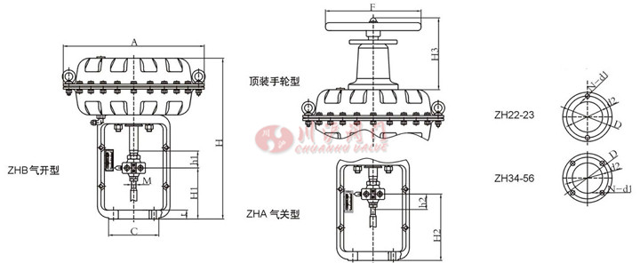 | 氣動薄膜執(zhí)行器 | 型號 | ZHA\B-22 | ZHA\B-23 | ZHA\B-34 | ZHA\B-45 | ZHA\B-56 |