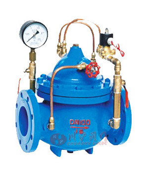 600X水力電動控制閥由主閥、針閥、電磁向?qū)чy與球閥等組成。水力電動控制閥安裝在管路中作為遙控開啟和關(guān)閉的功能。在此閥上加裝手動控制裝置,當(dāng)停電或電路出現(xiàn)故障時,此閥亦可開啟或關(guān)閉,維修簡單、使用方便、安全可靠。